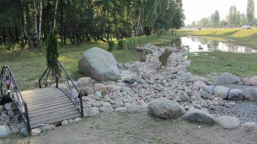 | Мостик через каменный ручей. После установки этого декоративного мостика сюда стали приезжать молодожены, чтобы повесить замок со своими именами. | |
